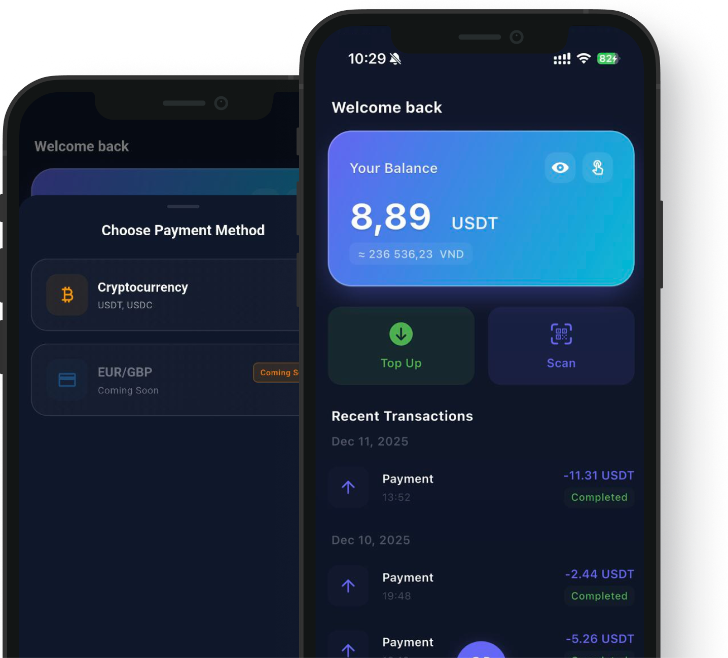 Add USDT to your balance in seconds. More networks soon.