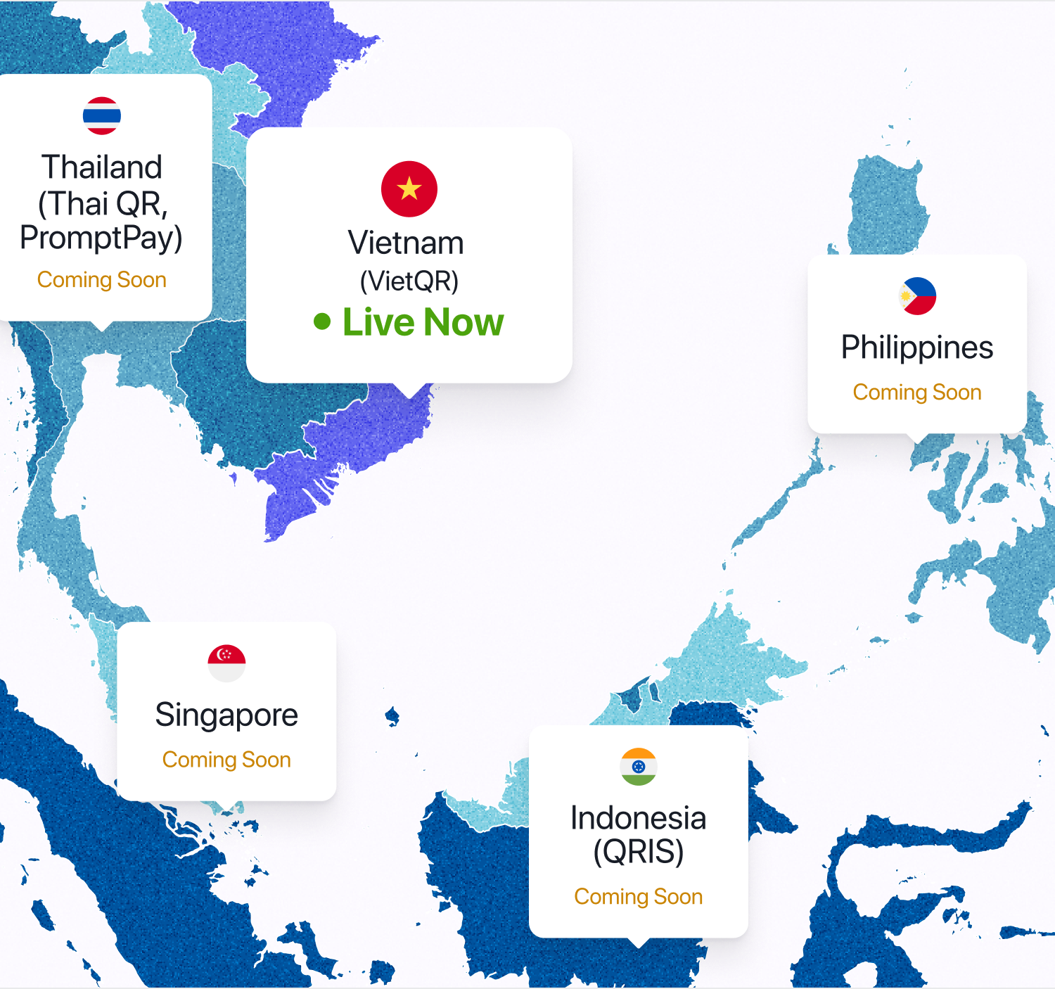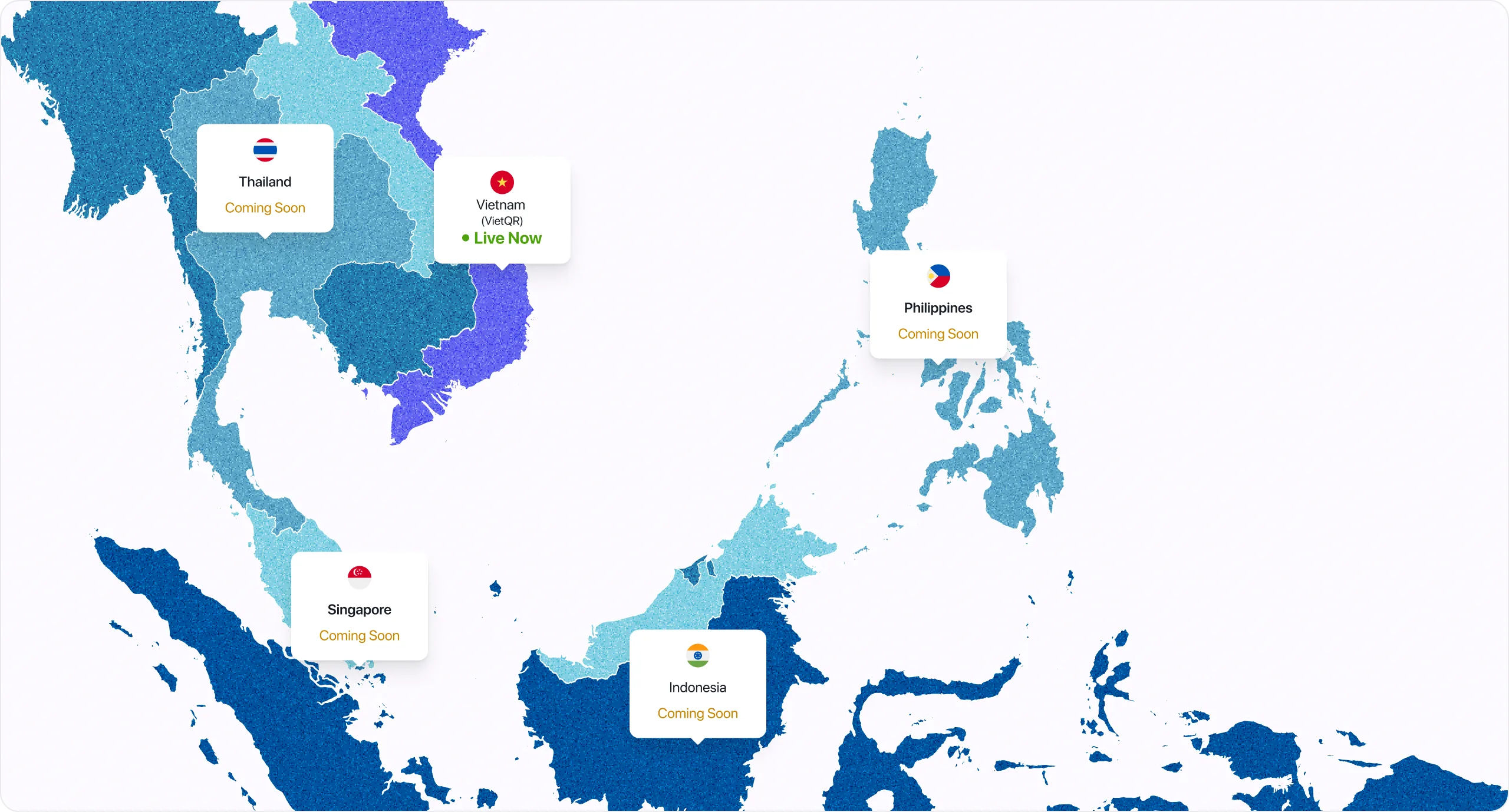 Vietnam (live), Thailand, Indonesia, Philippines, Singapore — coming soon.